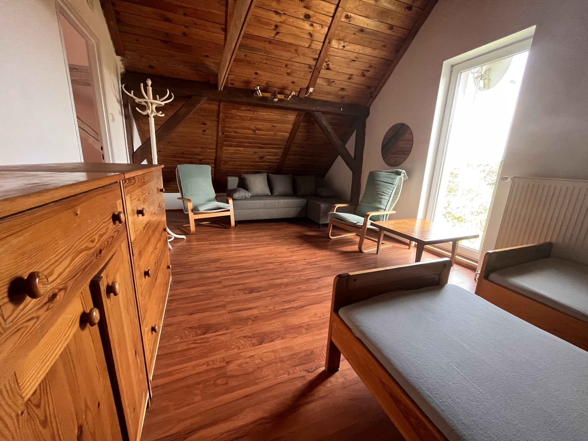 Pokój 4-osobowy i dwa pokoje dwu-osobowe, salon z kuchnią.